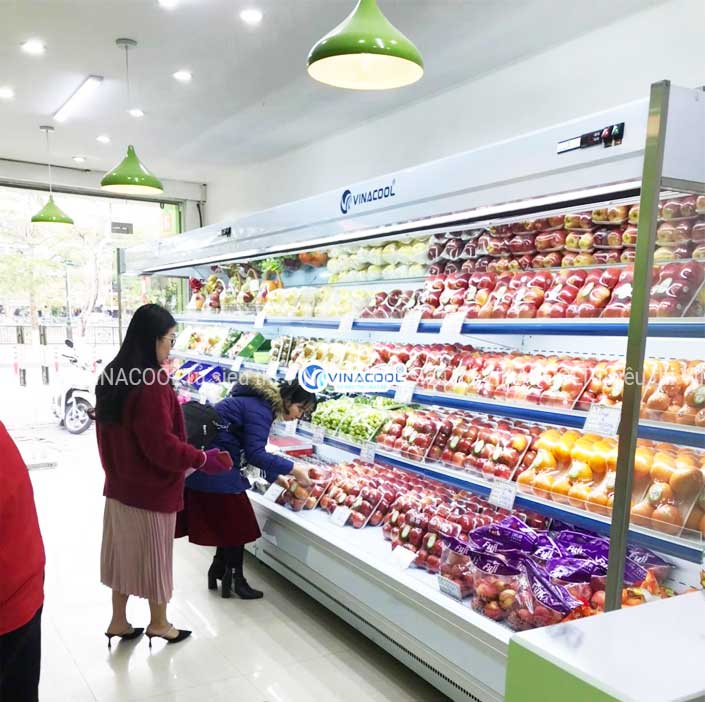 Tủ mát cửa hở là dòng mát mang lại hiệu quả trưng bày tốt nhất hiện nay. Đặc điểm của dòng tủ mát này là mặt trước hở hoàn toàn giúp khách hàng có thể quan sát trực quan thực phẩm bên trong. Không gian bảo quản thực phẩm rộng rãi giúp bảo quản được số lượng trái cây lớn.