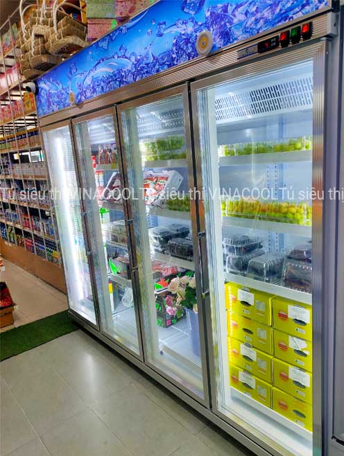 2.1 Tủ mát siêu thị 4 cánh kính bảo quản thực phẩm dài lâu