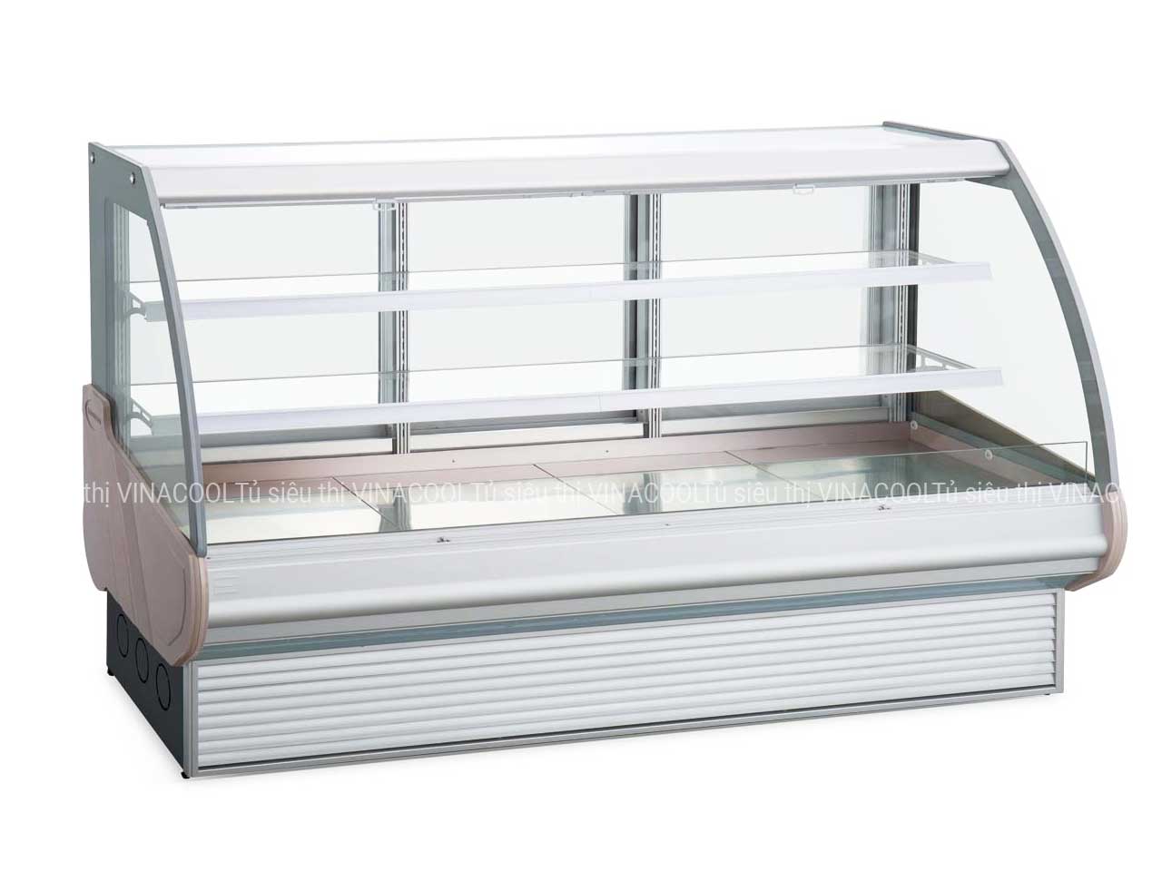 - Thiết kế dạng tủ đứng kính vòm sang trọng, hiện đại với 2 tầng giúp sắp xếp và trưng bày thực phẩm một cách khoa học. Khay đựng thực phẩm được làm bằng kính có khả năng chịu lực tốt, giúp bảo quản được số lượng thực phẩm nhiều nhất.